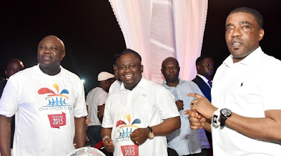 Lagos State Governor, Mr. Akinwunmi Ambode (right), with Majority Leader, House of Representatives, Hon. Femi Gbajabiamila (left), during the Grand Finale of the One Lagos Fiesta, at the Bar Beach, Victoria Island, Lagos, on Thursday, December 31, 2015. Oba of Lagos, Oba Rilwan Akiolu I, Attorney General & Commissioner for Justice, Mr. Adeniji Kazeem and other dignitaries were all there.